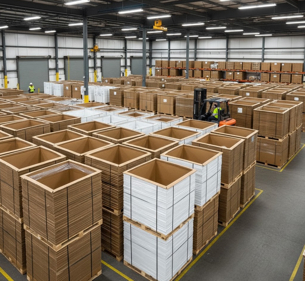 Heavy-duty corrugated bulk bins for efficient storage and transport of dry goods.