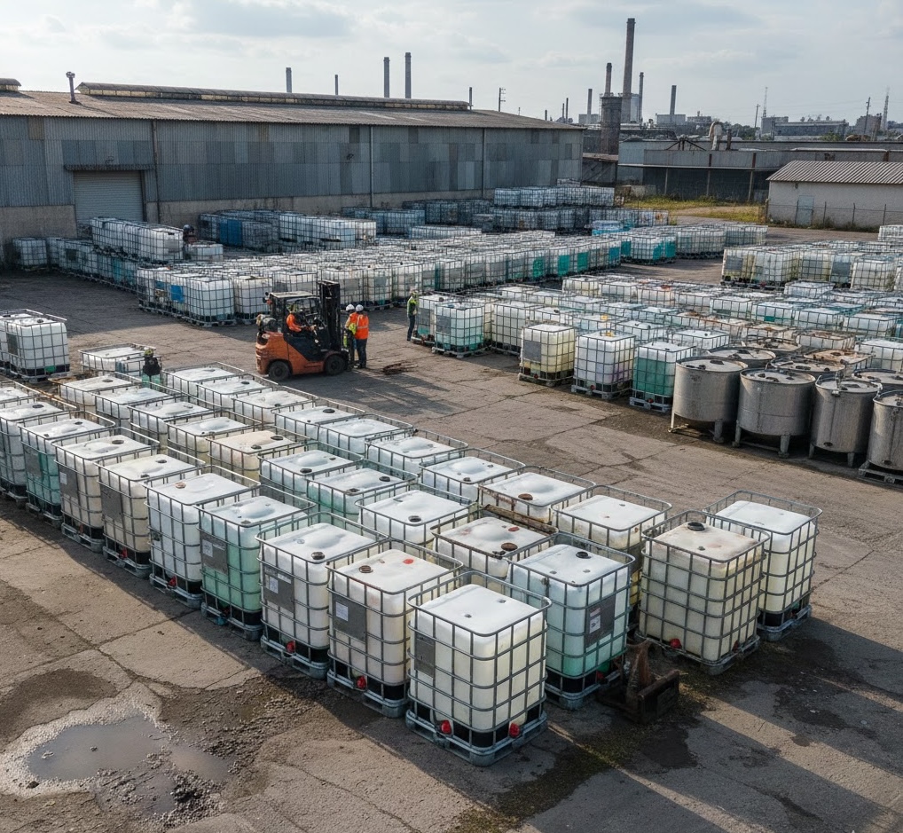 IBC tanks for safe storage and transport of chemicals, solvents, and hazardous materials with proper UN certifications.